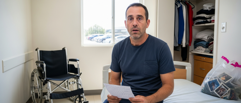 Medicinska sestra je porinila prazen invalidski voziček starejšega moškega na hodnik in Leu naročila, naj spakira očetove stvari, toda ko je odprl omaro, je spoznal, da se je