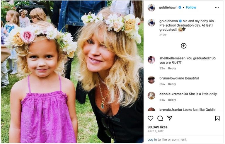 Omeniti je treba, da je Hawn s svojim drugim možem B. Hudsonom dobila dva otroka. Poleg tega ima Kate dva otroka, katerima je Goldie še vedno predana in skrbna. Njen sin Oliver ji je podaril tri vnuke, eden od njih je Rio, ki je star šele 7 let.
