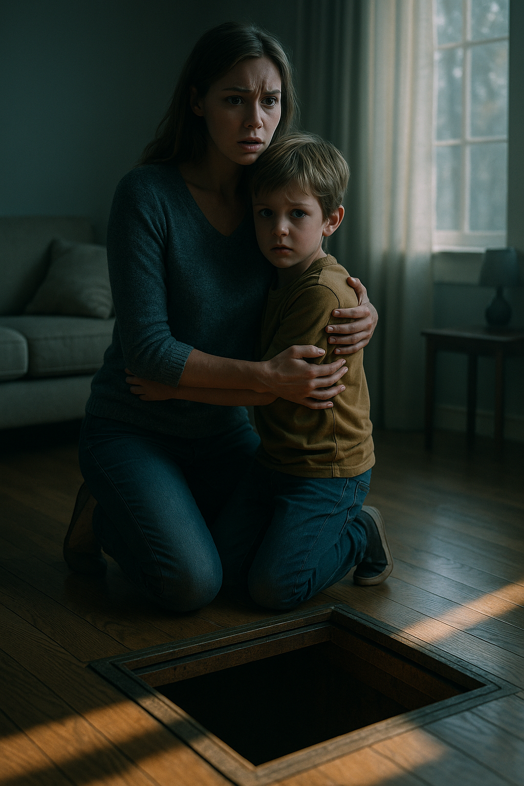Nekoč, med čiščenjem, se je Emily odločila, da bo dvignila star preprogo ob steni – in pod njo odkrila tanek kovinski obroč, vgrajen v tla. Potegnila je … in deske so se rahlo dvignile. Pod njimi je bila tema.