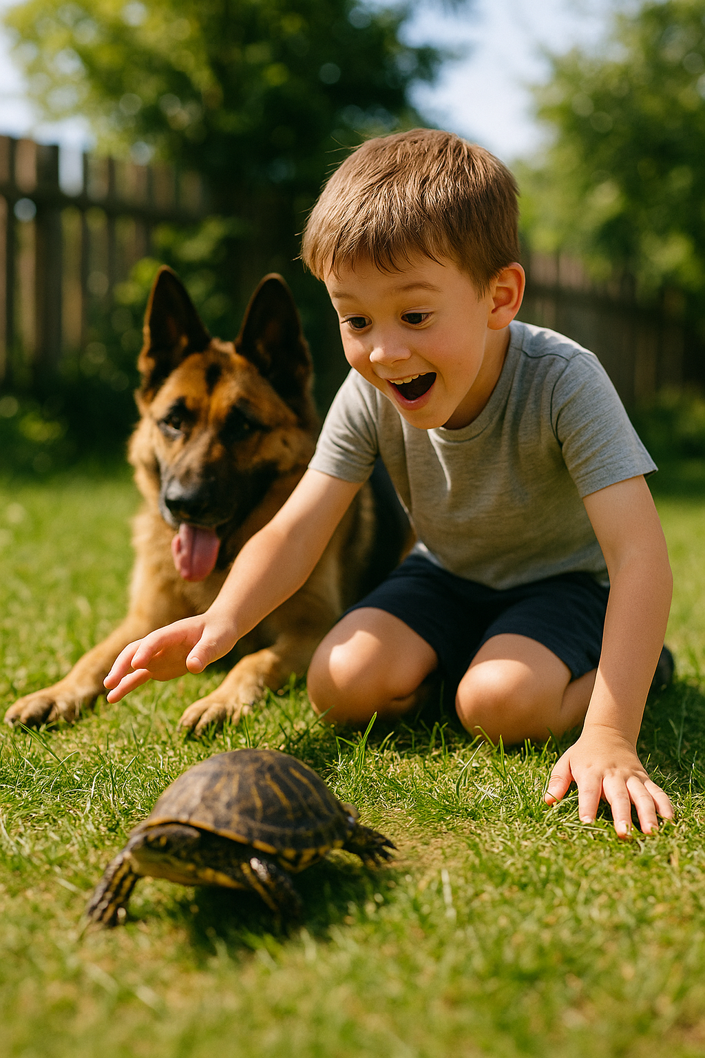 »Poglej, mama! Prava!« je veselo vzkliknil in želvo postavil na travo na dvorišču.