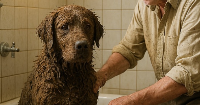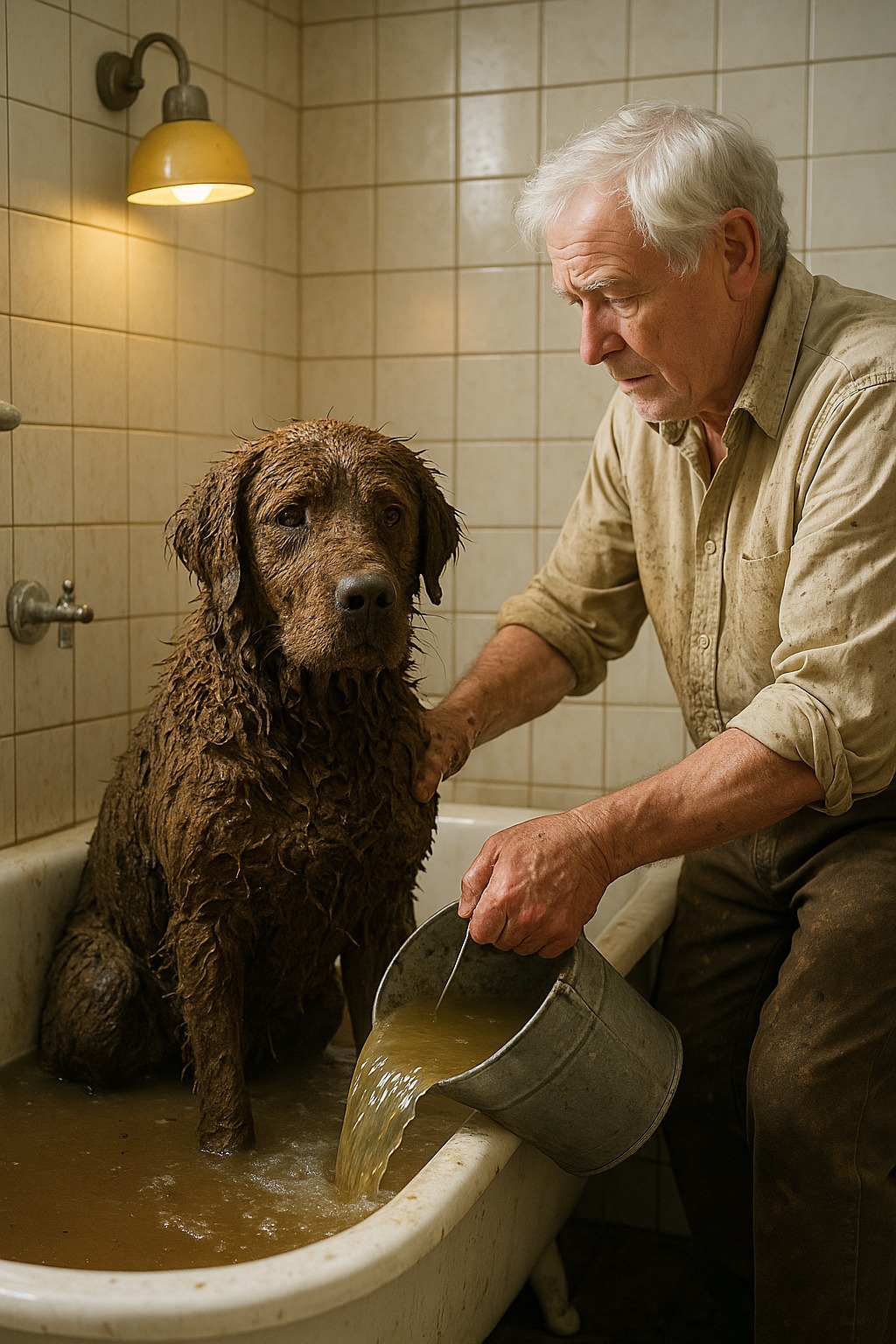Nalil je toplo vodo v kad in začel z njo sloj za slojem spirajoč umazanijo. Voda je hitro potemnela, pod njo pa se je pokazal drug pes. Ni bil potepuh, ni bil ulični pes. Dlako je imel gosto, zlato, nekoč negovano. Okoli vratu je imel star, skoraj obrabljen ovratnik z kovinsko ploščico.