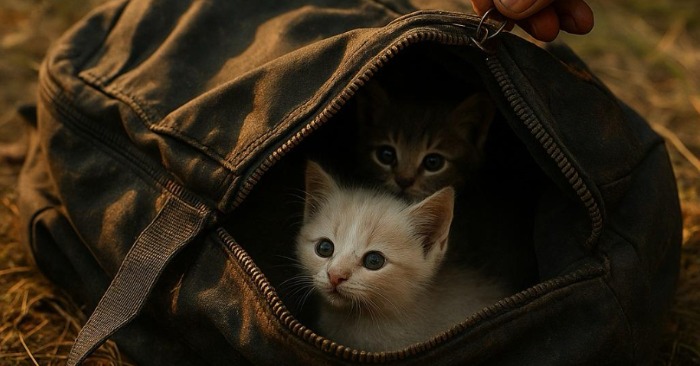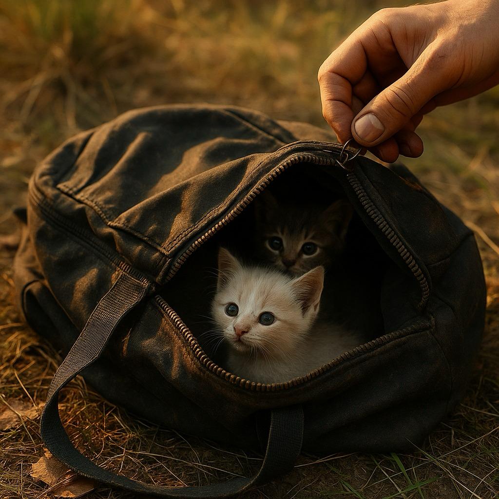 V nahrbtniku sta hitro našla steklenico vode, jo nalila v pokrovček in jo približala njunim gobčkom. Siva mucka je začela piti – žejno, šibko, a obupno. Bela je le tiho stokala.