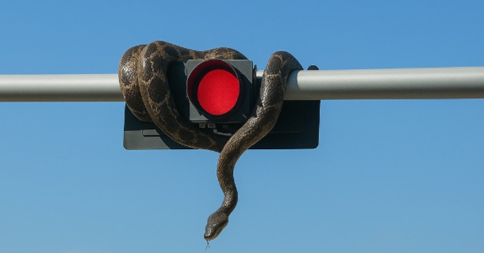 Kača je dvignila glavo. Zelo počasi. In tega pogleda ne bo nikoli pozabil. Ploščate, črne, starodavne oči – kot da gledajo skozi. Situacija je postala nevarna. Če bi naredil nenaden gib, bi napadla. Če bi se približal, tudi. Bežati je bilo prepozno. In takrat je naredil edino, kar je lahko.