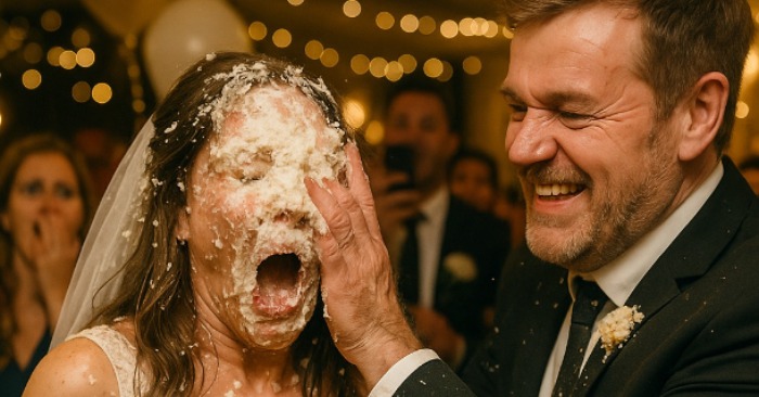 Množica je zajela sapo. Nekdo se je zasmejal. Nevestine prijateljice so zamrle z dvignjenimi kozarci. Olivia je stala z obrazom, pokritim s kremo, in nemo gledala moža.