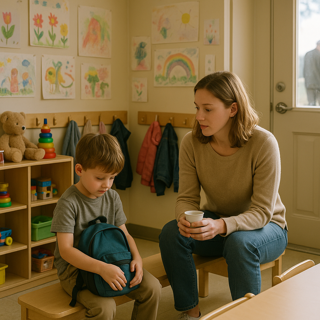 Nekega večera, ko so skoraj vsi otroci odšli domov, je ostal samo David, ki je sedel sam na nizki klopi ob vratih, z nahrbtnikom na kolenih. Njegova mama je spet zamujala. Emma mu je natočila čaj v majhen papirnat lonček in se usedla poleg njega.