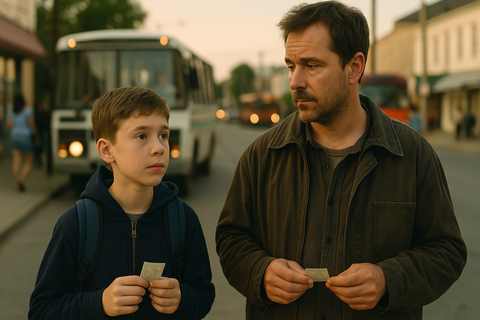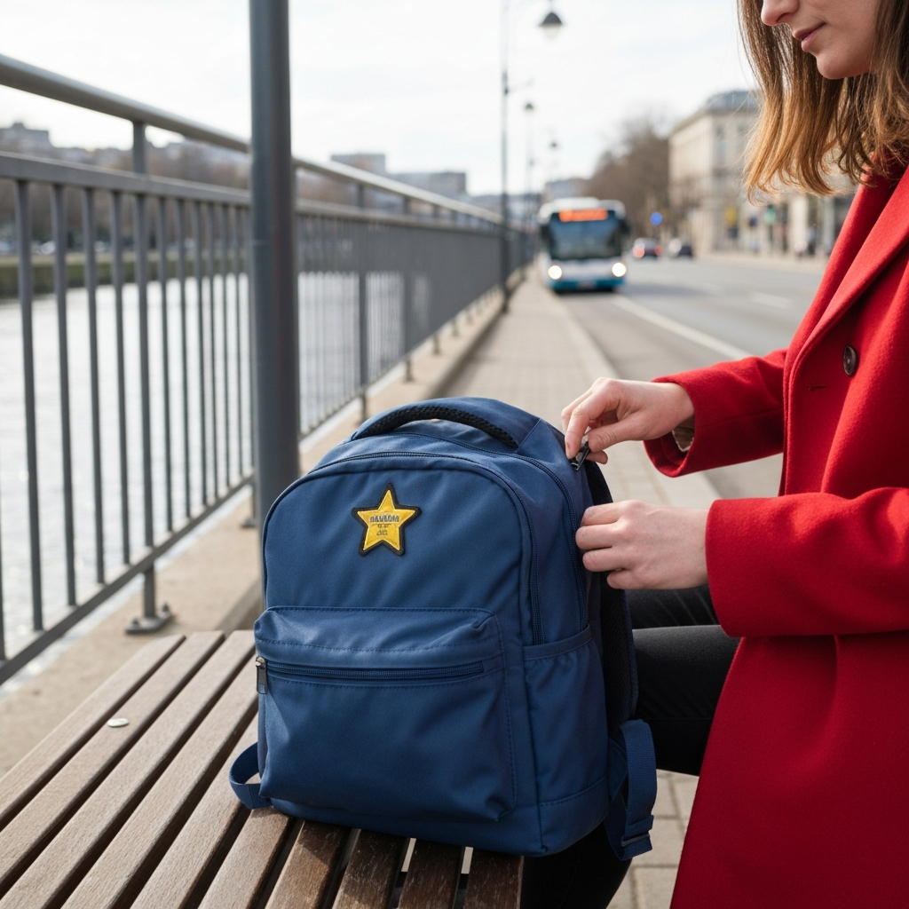 Teden dni kasneje so ljudje v mestu opazili nekaj nenavadnega. Temno moder nahrbtnik z rumeno zvezdo je bil še vedno na avtobusnih postajališčih – zdaj pa ga je nosil fant, ki je stal poleg očeta. Oba sta držala poceni papirnate vozovnice in se veselo prepirala o tem, katera postaja je najbližje kinu, parku ali jezeru.