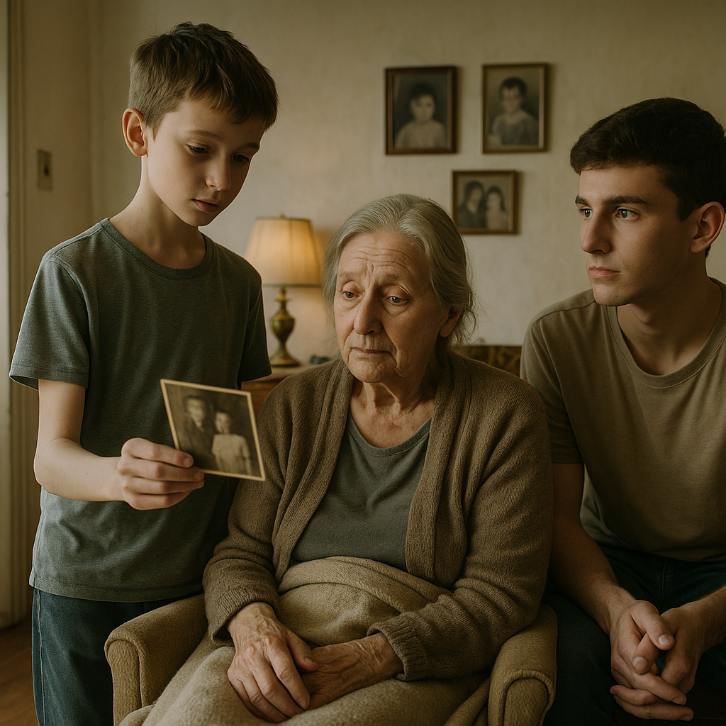 Noah je govoril o svoji babici Mariji, ki je pozabljala imena, a se je spominjala vsake pesmi iz svoje mladosti. Pokazal nam je njeno sliko iz boljših časov – ponosna ženska z ostrimi očmi in čvrstimi usti.