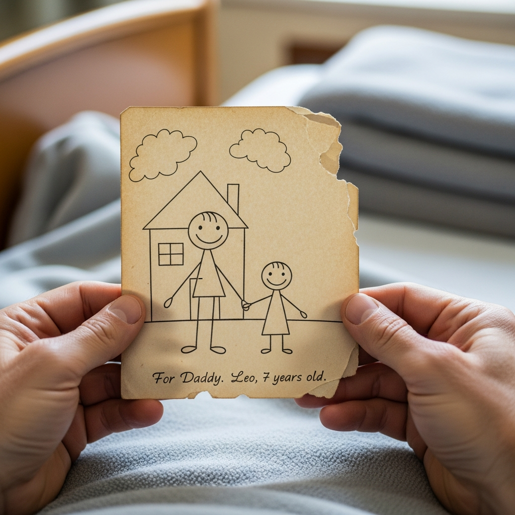 Lea je stisnilo v prsih. Ni se spomnil, da bi očetu dal to risbo. Komaj se je spominjal, da je bil star sedem let – le materin utrujen obraz, zaloputnjena vrata, senca moškega, ki je prihajala in odhajala kot nevihta.