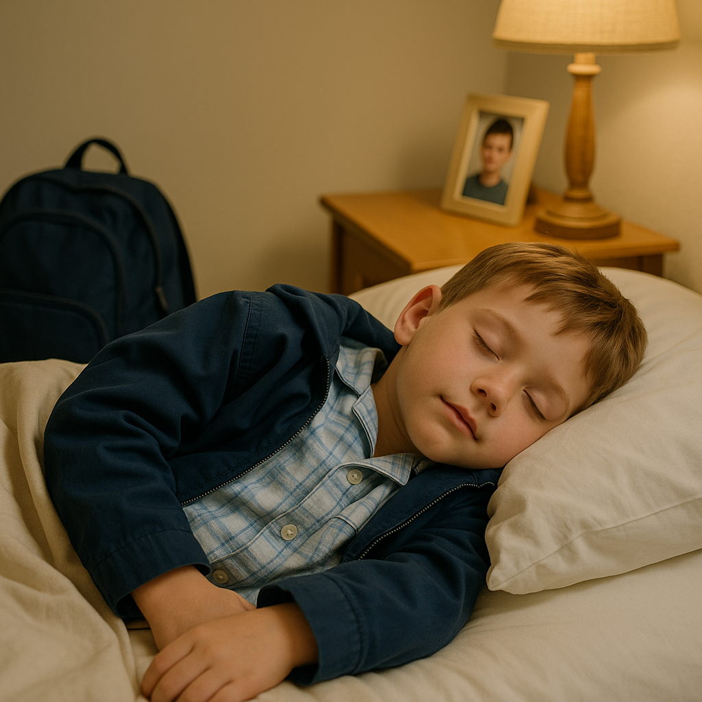 Vrnila sem se in nežno prekrila fanta z jakno. Premaknil se je, prsti na nahrbtniku so se mu sprostili. Za trenutek sem mislila, da se bo zbudil, a oči so mu ostale zaprte.