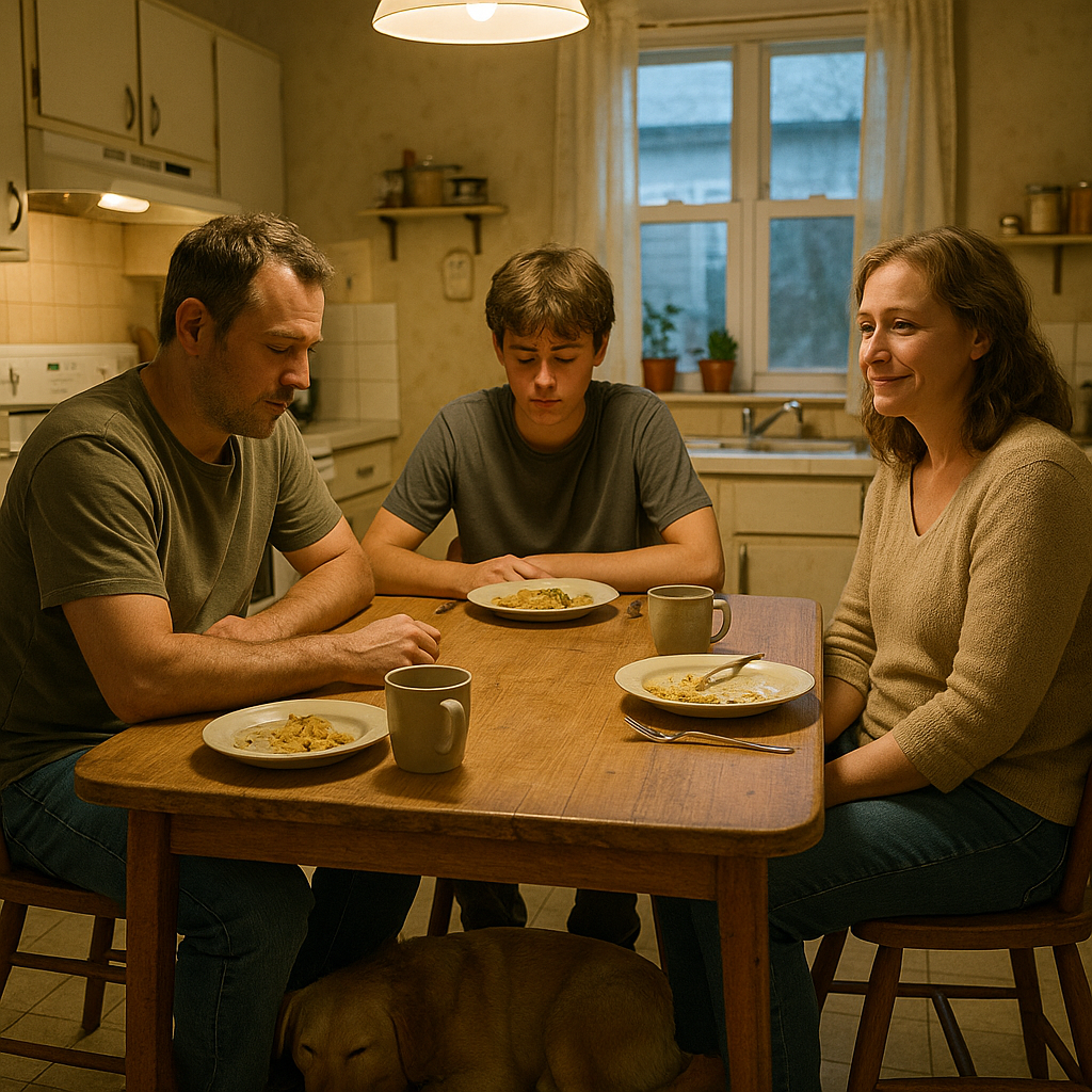 Tisti večer je bila naša miza prvič po pogrebu prenatrpana. Kjer je prej sedela mama, je sedel neznanec, se smejal očetovim groznim šalam in jokal, ko je pomotoma rekel „mi“ namesto „jaz“. Buddy je spal pod mizo, ena šapa je počivala na Marijinem čevlju, druga pa na očetovem.