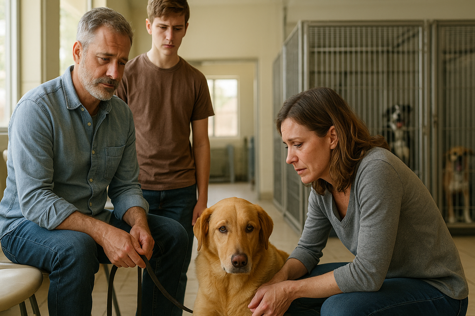 Zavetišče je bilo glasnejše, kot sem si predstavljala. Kovinske kletke, lajanje, kisla mešanica razkužila in strahu. Sedeli smo na plastičnih stolih, Buddyjev povodec je bil ovit okoli očetove roke kot vprašaj.