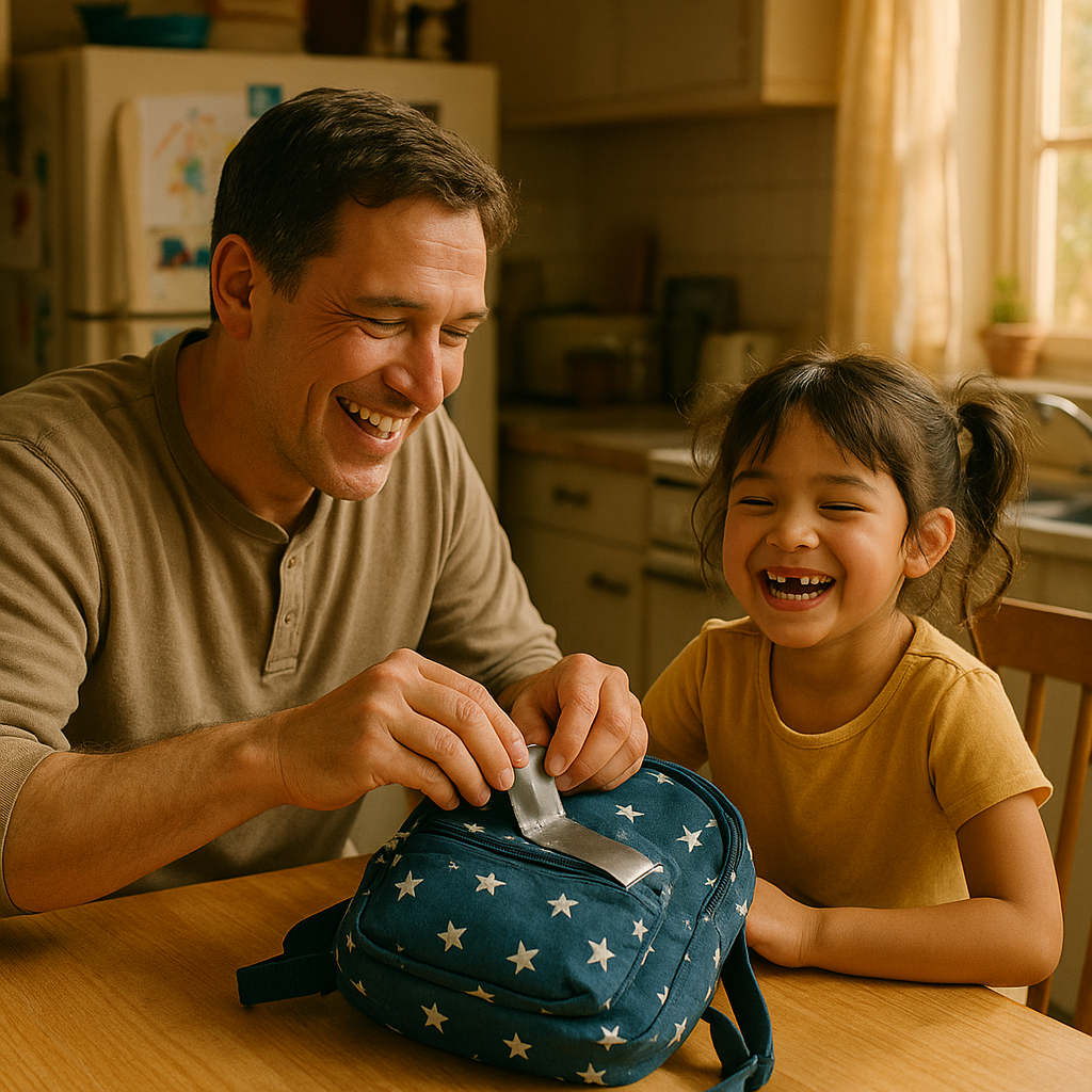 Soba se je nagnila. Moj prvi nahrbtnik je bil moder z belimi zvezdicami. Star sem bil šest let. Zadrga se je zlomila drugi dan šole. Oče jo je popravil s srebrnim trakom in se smejal, da je zdaj videti kot raketa.