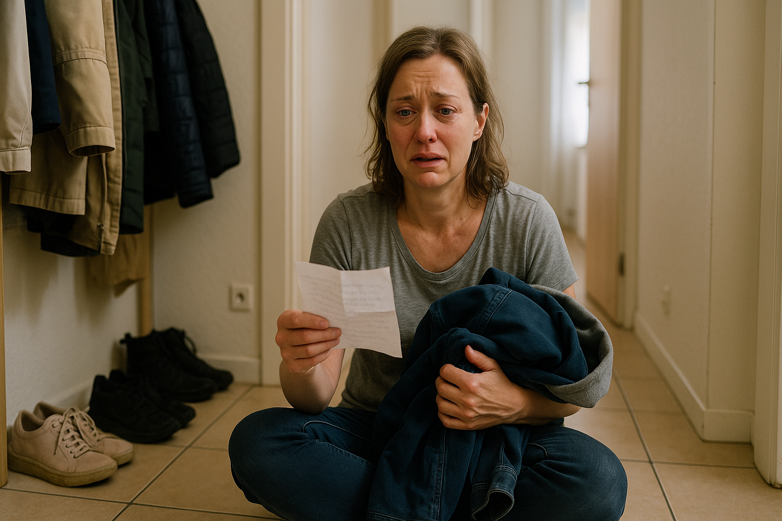 Emma je čistila omaro na hodniku, kot to počnejo ljudje, ko so dovolj utrujeni, da bi jokali, a preveč ponosni, da bi se usedli. Zgrabila je staro mornarsko jakno, ki jo je njen sin Noah prerasel prejšnjo zimo, jo stresla, da bi videla, ali je še vedno dovolj dobra za dobrodelne namene, in zaslišala rahlo prasketanje papirja. Razdražena je segla v žep in pričakovala račun ali ovitek sladkarij.