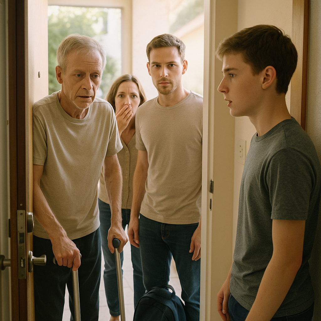 Neznanec se je rahlo nasmehnil, kot da bi to pričakoval. »Ravnokar sem ga pripeljal domov,« je mirno rekel. »Zgrudil se je na avtobusni postaji. Vprašal je za ta naslov.«