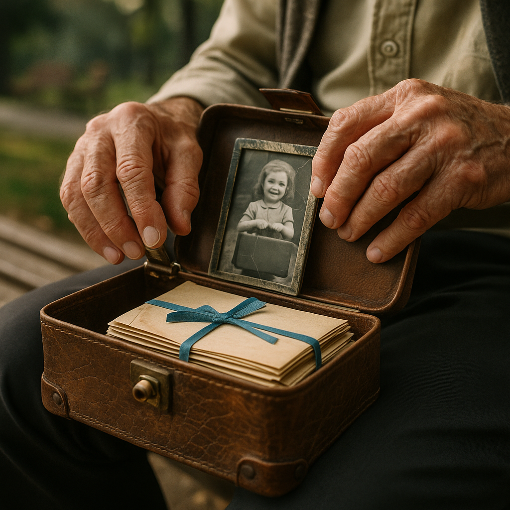 Ko je dvignil pokrov, so se mu tresle roke. Adam se je nagnil bližje in pričakoval, da bo v njem zagledal otroške zaklade, zamrznjene v času. Toda kovček je bil skoraj prazen.