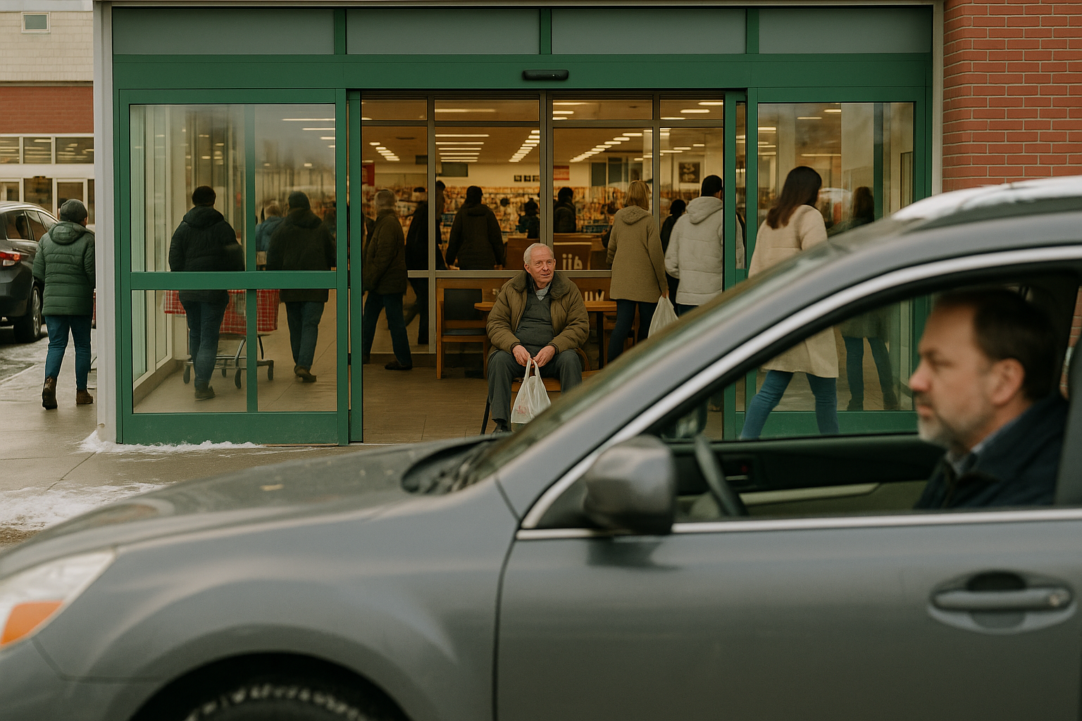 Ko se je končno vrnil na parkirišče supermarketa, se mu je stisnilo v želodcu. Na pol je pričakoval utripajoče luči, policijo, rešilca. Namesto tega je bil le tihi kaos vozičkov in ljudi ter znana drsna vrata, ki so vdihovala in izdihovala.