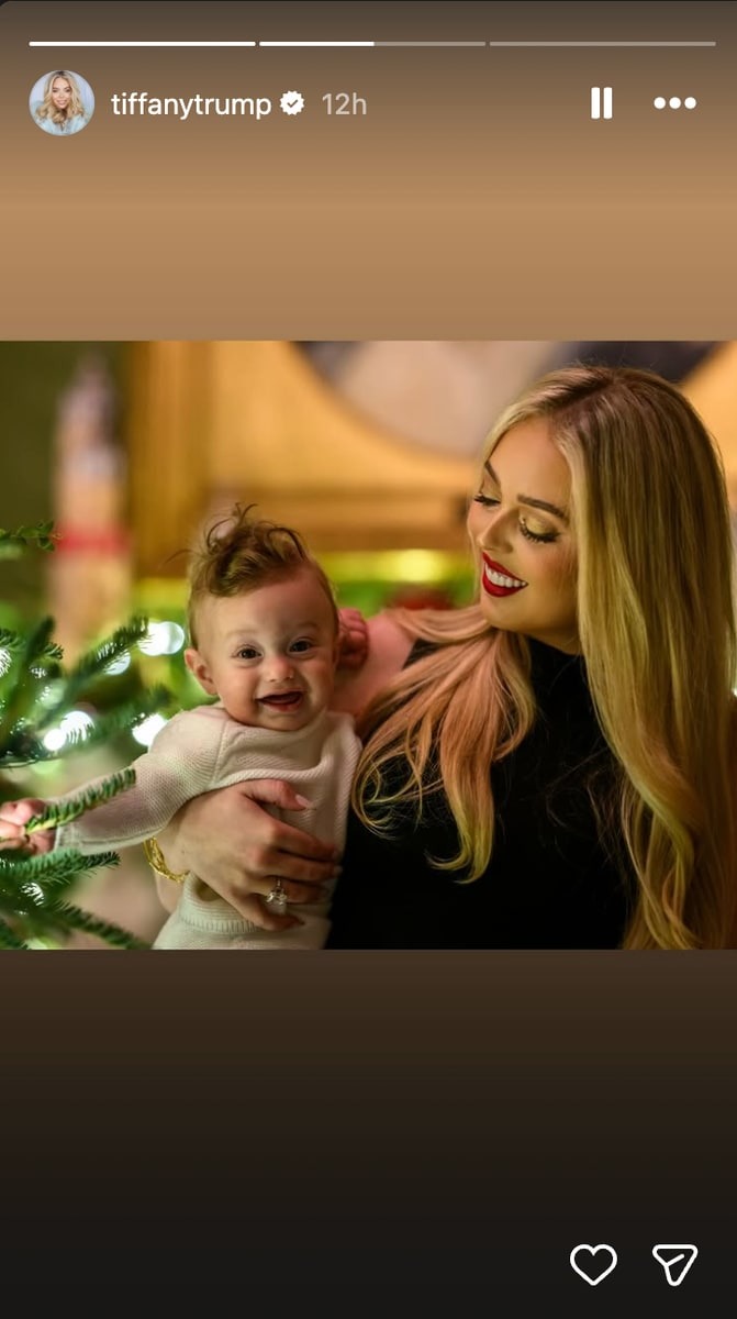 Praznični čas je letos za Tiffany Trump dobil globoko oseben pomen – in svetu je pustila pokukati vanjo. Na novo objavljeni praznični fotografiji je najmlajša hči Donalda Trumpa videti sijoča in sproščena, medtem ko ziblje svojega dojenčka ob visokem božičnem drevesu.