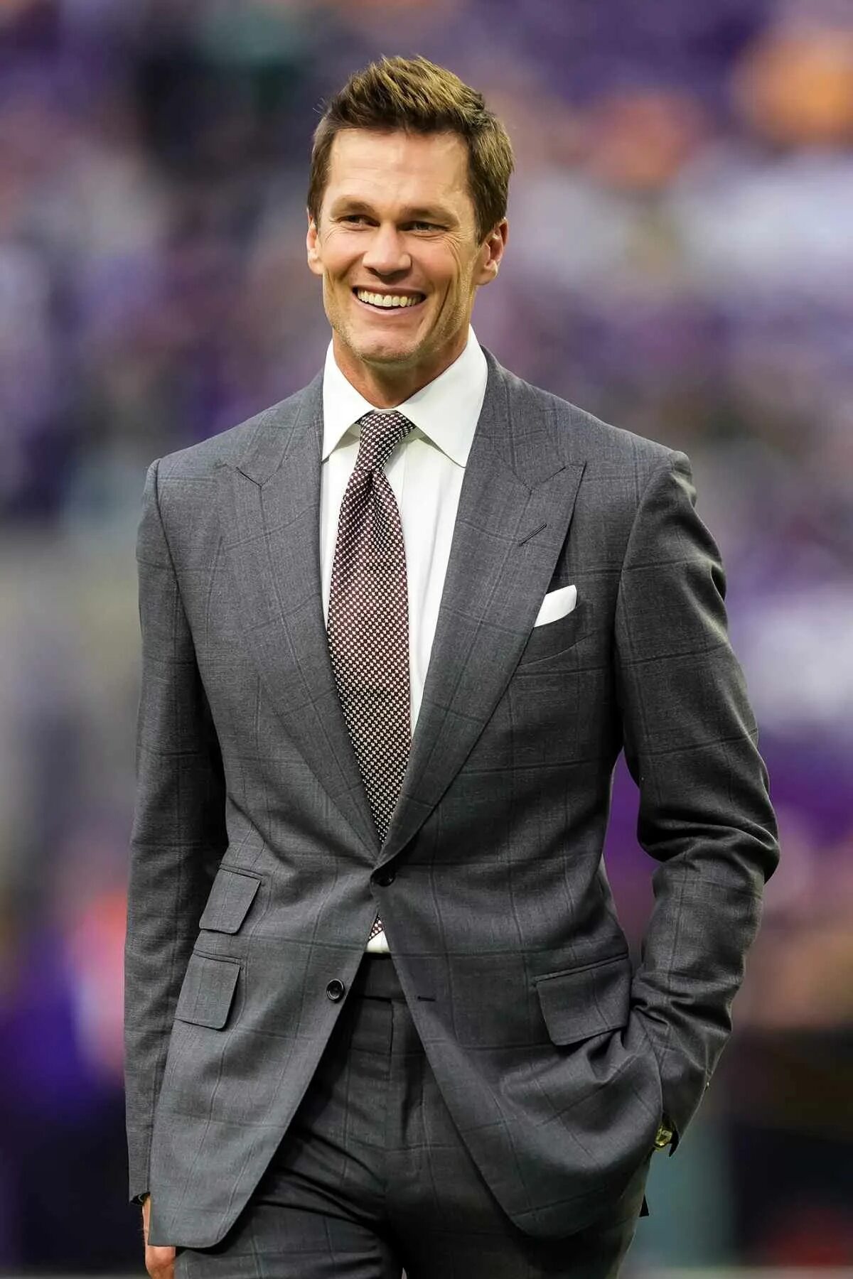Brady sam je ohranil preprostost, saj je belo majico z dolgimi rokavi kombiniral z drznimi rdečimi pižama hlačami, prekritimi s prazničnimi vzorci, videz pa je zaključil z obrnjeno kapo. Sproščen stil se je ujemal z razpoloženjem: ležeren, samozavesten in zelo značilen za upokojeno športno ikono.