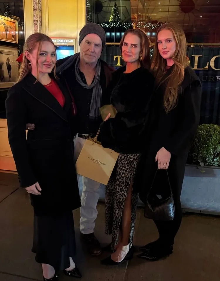 Družina je pozirala pred elegantnim Manhattnom, mestne luči pa so še okrepile filmsko vzdušje. Shieldsova je svoj videz zaokrožila z ostrimi črnimi čevlji na visoki peti in plišasto jakno, stojala med hčerkama kot glavni lik v popolnoma izbranem prazničnem filmu.