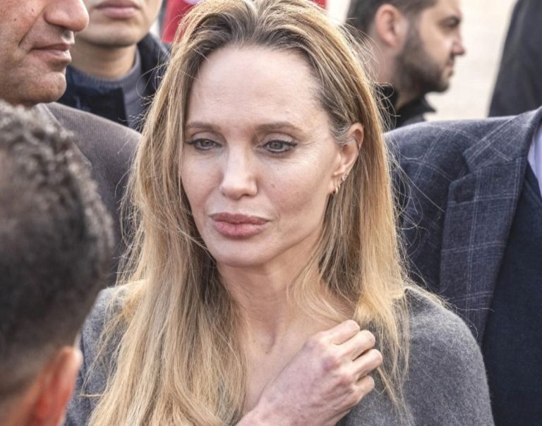 Obisk ni bil glamurja. Joliejeva je nosila preprost siv pulover, lase je imela razpuščene, obraz skoraj brez ličil. Pri 50 letih je bila videti natanko tako, kot nekdo, ki je prestal dolge lete, napete sestanke in čustveno težke pogovore. To je bil praktičen videz, ne pa kuriran.