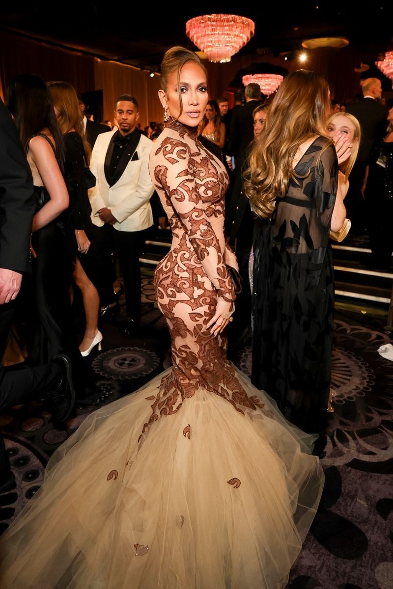 Na zabavi po podelitvi zlatih globusov Nikki Glaser je Lopez stopila v obleki brez naramnic s korzetom znamke Tamara Ralph. Popolnoma okrašena kreacija se je lesketala z vsakim korakom, prekrita z bleščicami in tekočimi resicami, ki so lovile svetlobo med hojo. Bila je tista vrsta obleke, ki je zahtevala gibanje, očitno narejena za ples in ne za stanje na mestu za fotografiranje.