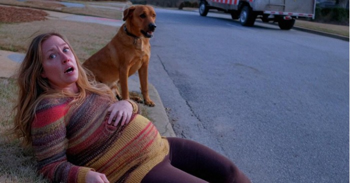Iztrgal se je povodcu in bliskovito stekel čez cesto. Z vso močjo je trčil v Vanesso, zaradi česar je padla na travo. Kombi je zdrsnil za nekaj centimetrov.