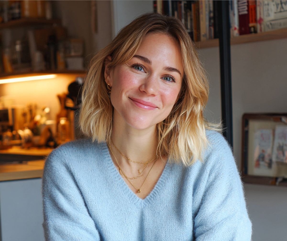 Njeni lasje so se lesketali in so ji segali tik pod ramena. Nosila je čisto modro jopico in njena drža je bila bolj pokončna, kot sem se je spominjal. A prav njene oči – jasne, svetle in tiho odločne – so mi stisnile grlo.