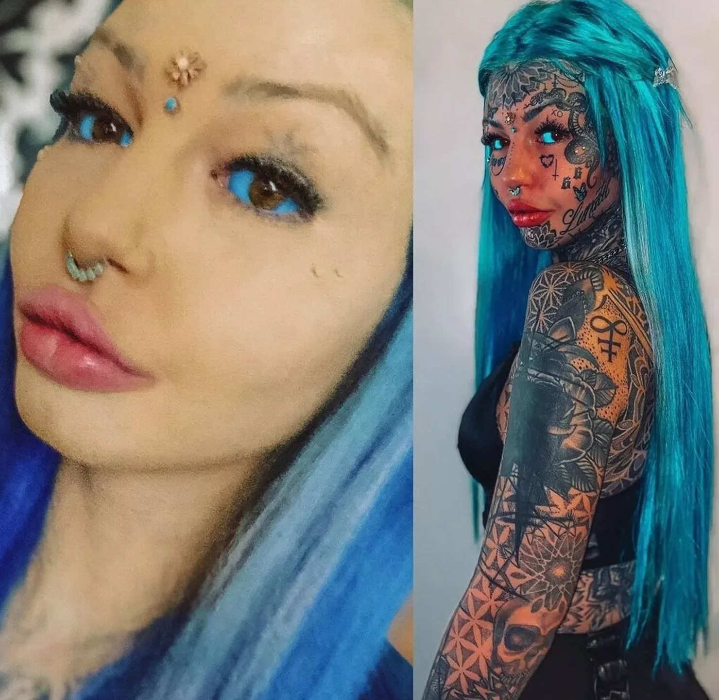 Zdaj pa se je vrnila v središče pozornosti, potem ko je pokazala, kako bi izgledala brez svojega običajnega videza. Manekenka je tetovaže na obrazu prekrila z ličili, končni rezultat pa je presenetil celo njo.