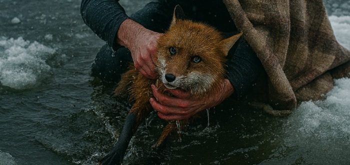 Na hladnem februarskem jutru so ribiči opazili nenavadno gibanje pri brežini na robu reke. Led je bil tanek, veter je rezal v obraz, voda pod ledom pa je