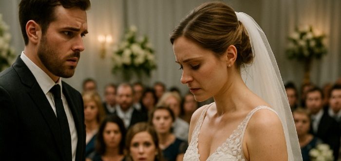 Dvorana je žarela od svetlobe. Bele rože, smeh, glasba, šelestenje oblek. Nevesta in ženin sta stala pred oltarjem – lep par, s srečo na obrazih in iskrico v