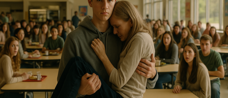 Tistega dne, ko je Daniel nesel mamo v šolsko jedilnico, so vsi začeli šepetati – a nihče ni vedel, da je to edini način, da jo obvaruje pred
