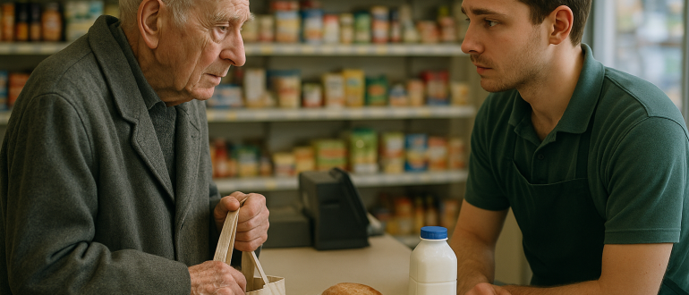 Starec je vsak večer vračal isto vrečko z živili v trgovino, dokler mu blagajnik ni sledil in odkril, kdo čaka na njegov kruh.. Liam ga je opazil nekega