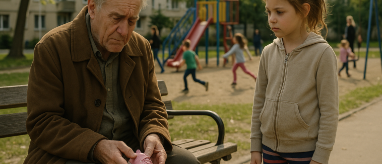 Starec je vsako popoldne sedel na isti klopi v parku, strmel v igrišče in stiskal majhen roza čeveljček, dokler nekega dne ni k njemu prišla deklica in ga