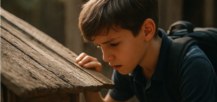 Pozno zvečer, ko je sonce že zašlo za borovci, se je Leon vračal domov po gozdni poti. Veter je šumel v vejah in tišina je bila tako gosta,