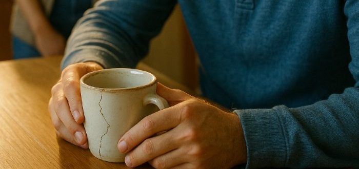 V kuhinji sta vedno imela isto skodelico. Bila je stara, z odkrušenim robom, obrabljenim vzorcem, ki je nekoč imel modre črte. Preživela je več selitev, na desetine pomivalnih