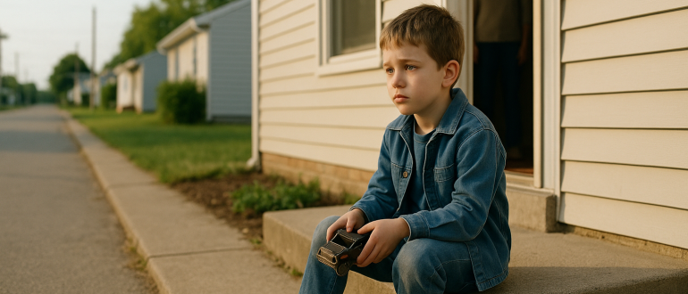 Tistega dne, ko je Ethan spakiral kovček in zapustil našo hišo, je pozabil le na eno stvar: svojega osemletnega sina na vhodnih stopnicah, ki je stiskal pokvarjen avtomobilček